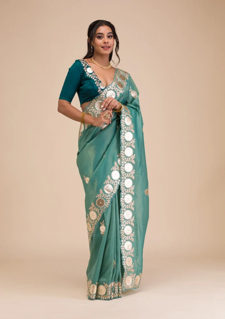 Bottle Green Swarovski Semi Crepe Designer Saree